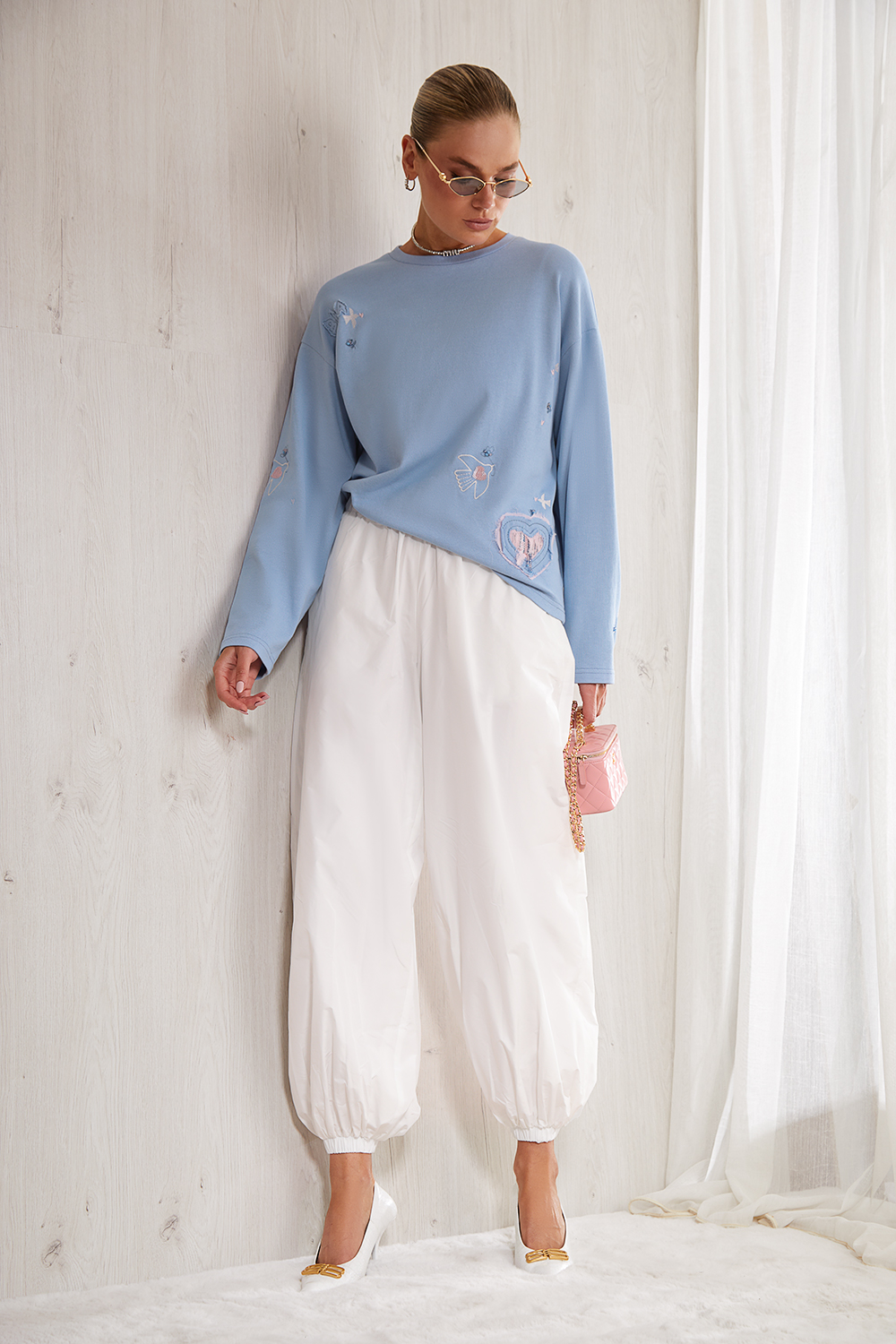 Брюки-“Алладины” выполнены из шуршащего хлопка.  Главный тренд сезона 2026.