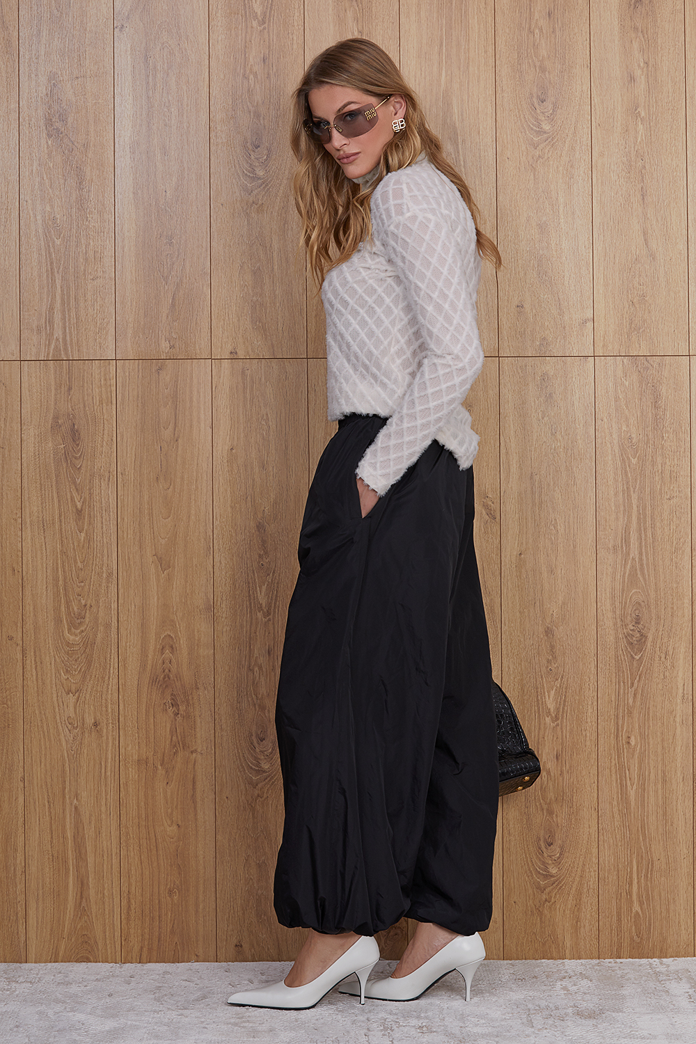 Джемпер прямого силуэта, немного заужен книзу, выполнен из мягкого и комфортного трикотажного полотна. Ажурная ткань с бархатистой поверхностью и очень приятная к телу. Перед и спинка изделия прямые. Чуть спущенная линия плеча.  Втачной   длинный рукав. Горловина высокая двойная стойка.